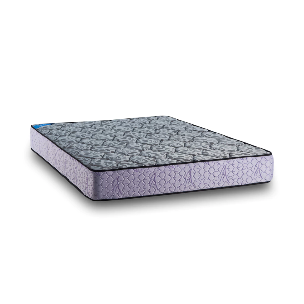 Diseño totalmente matelasseado en laterales de color lila y tapas de color gris. Su confección está realizada con materiales de calidad, como su tela jackard que posee un tejido de mayor resistencia a la abrasión y una excelente respiración en su superficie.