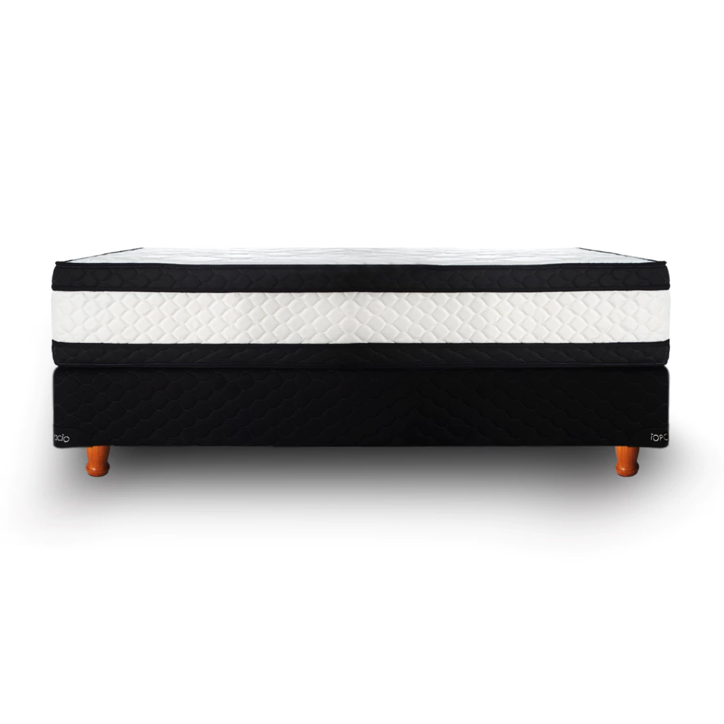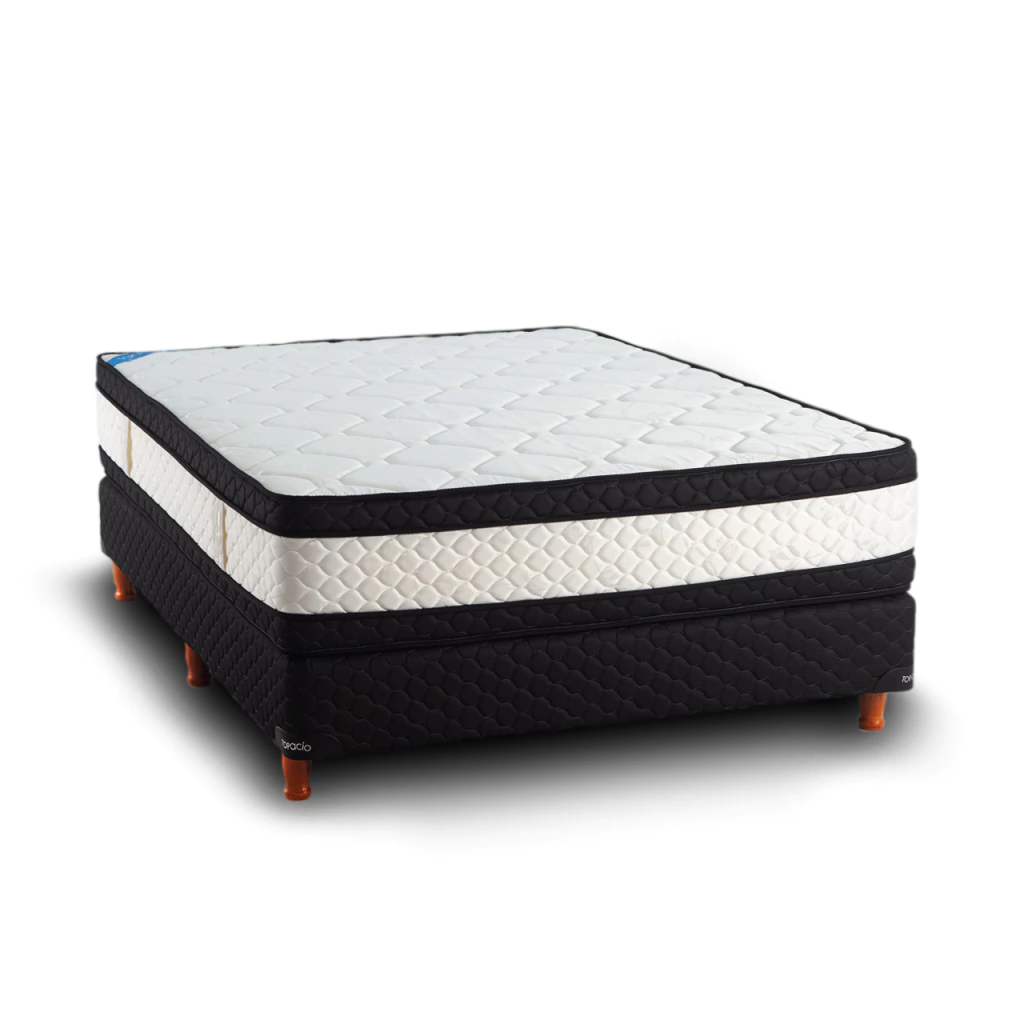 Su interior cuenta con resortes bicónicos de acero templado y doble pillow fabricado en espuma de poliuretano Topacio D30 de alta presión, que brindan una sensación de mayor suavidad sin perder firmeza. El soporte lumbar fortalecido mejora la postura y proporciona estabilidad adicional en la zona media del cuerpo.